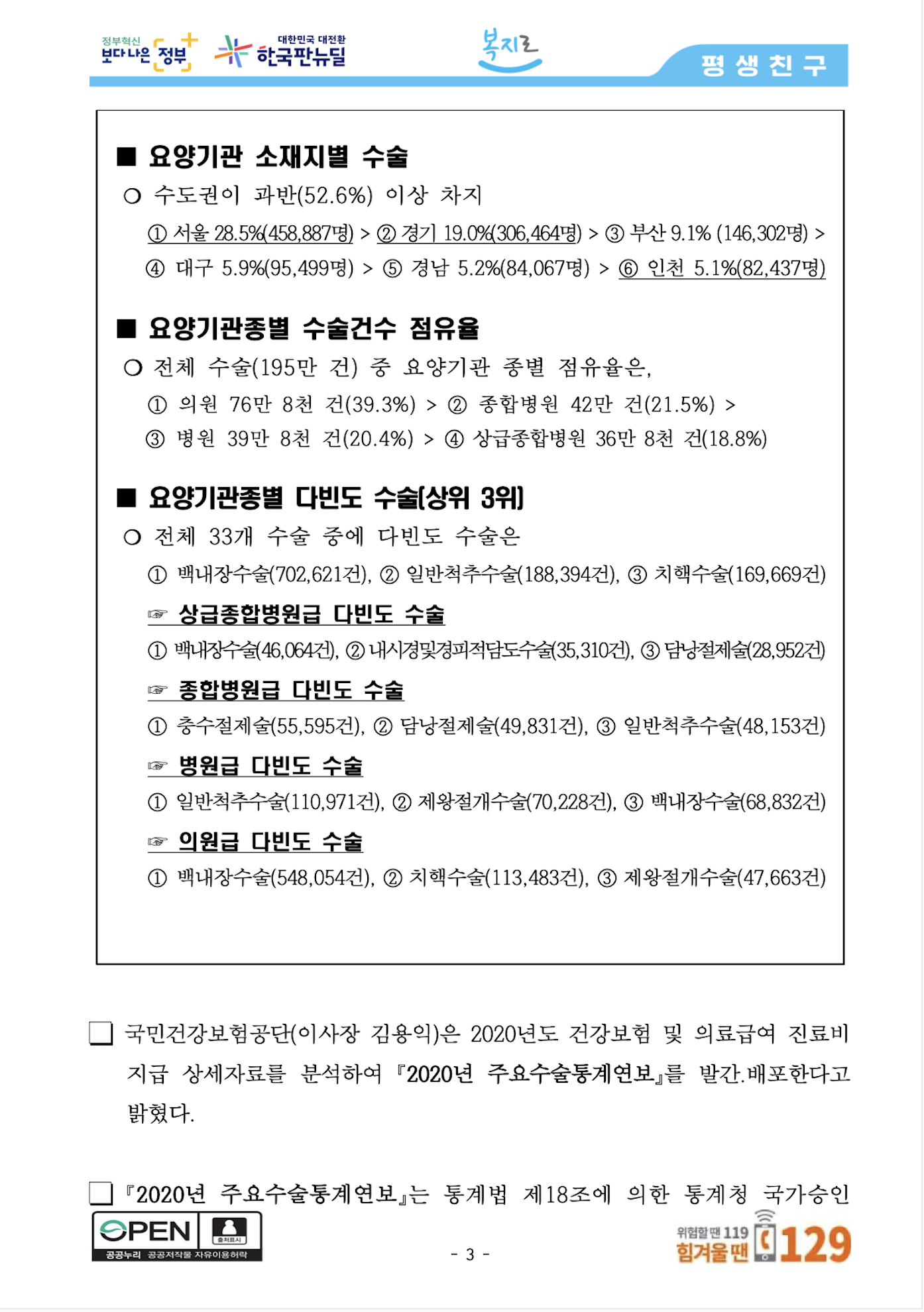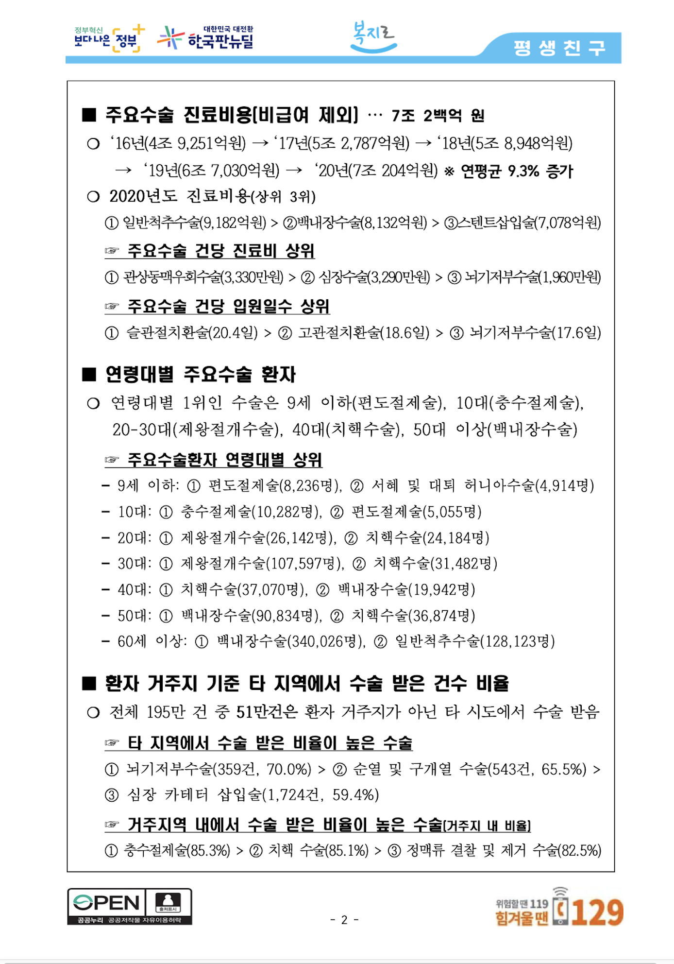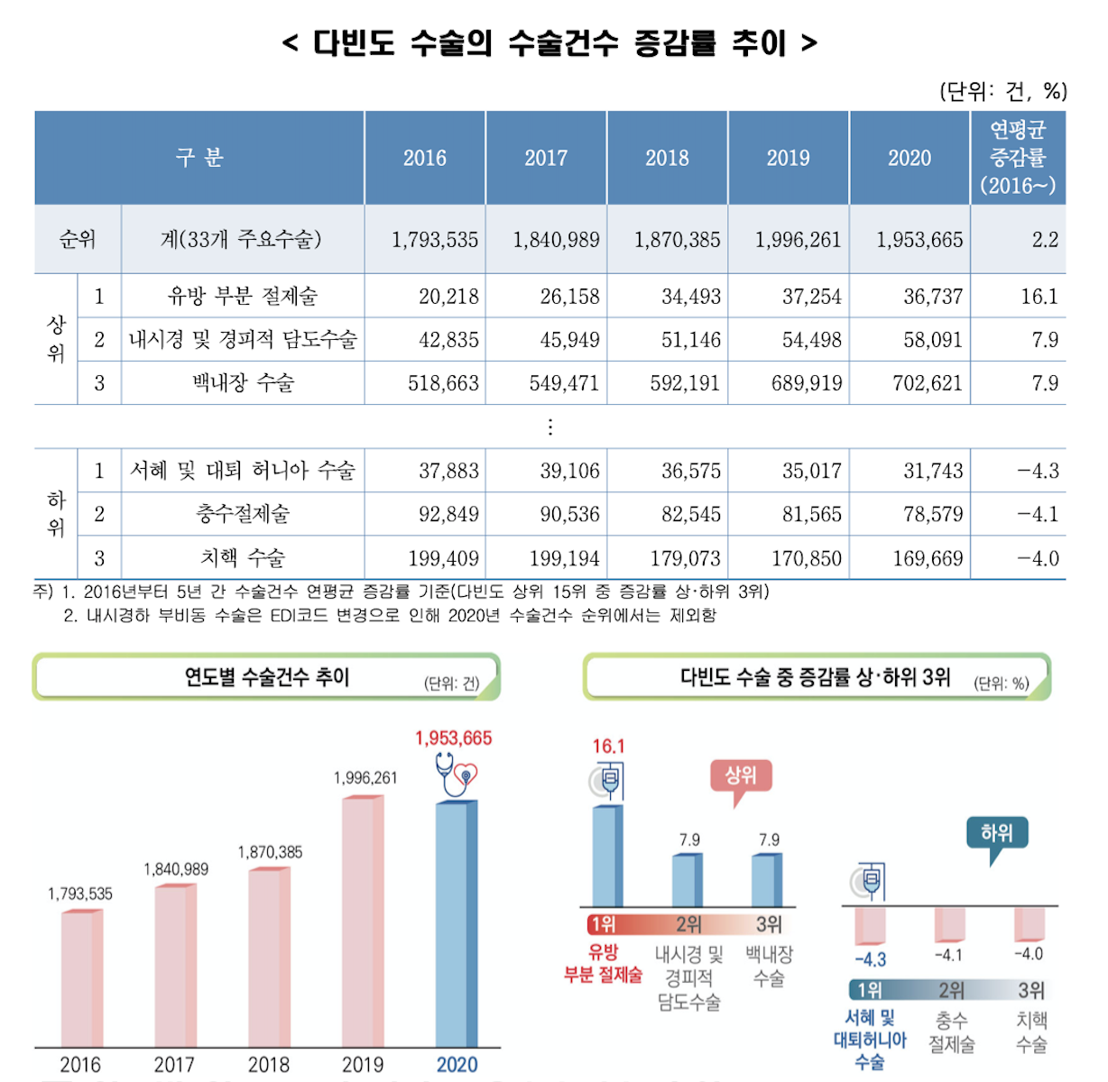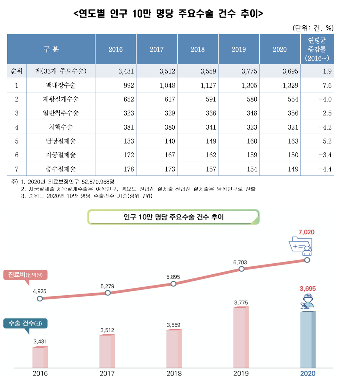 국민건강보험공단의 보도자료에 따르면, 2020년 가장 많이 받은 수술이 백내장 수술이었습니다.