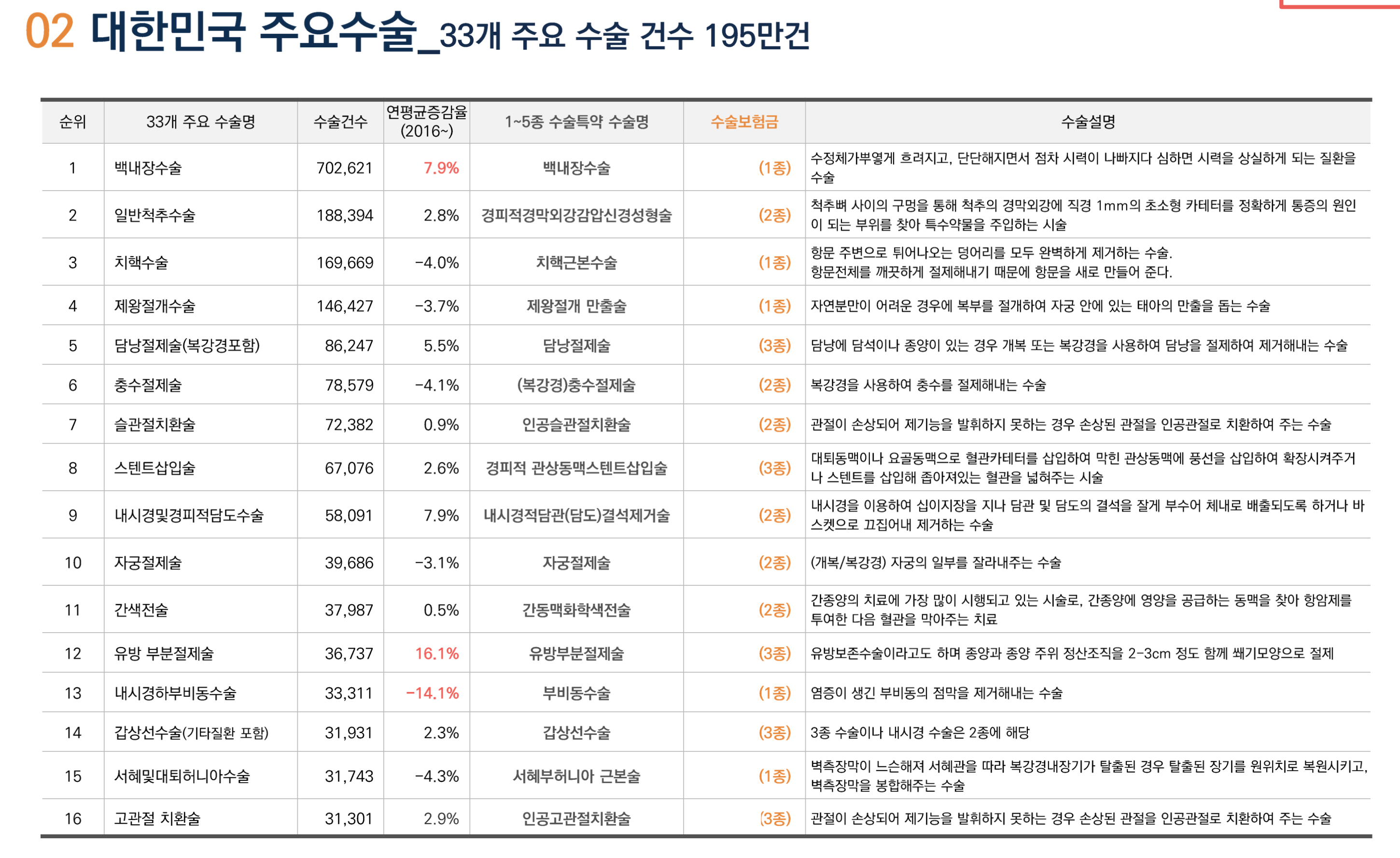 [자료] 1-5종 수술 분류표 - 내가 받은 수술이 몇 종 수술일까?